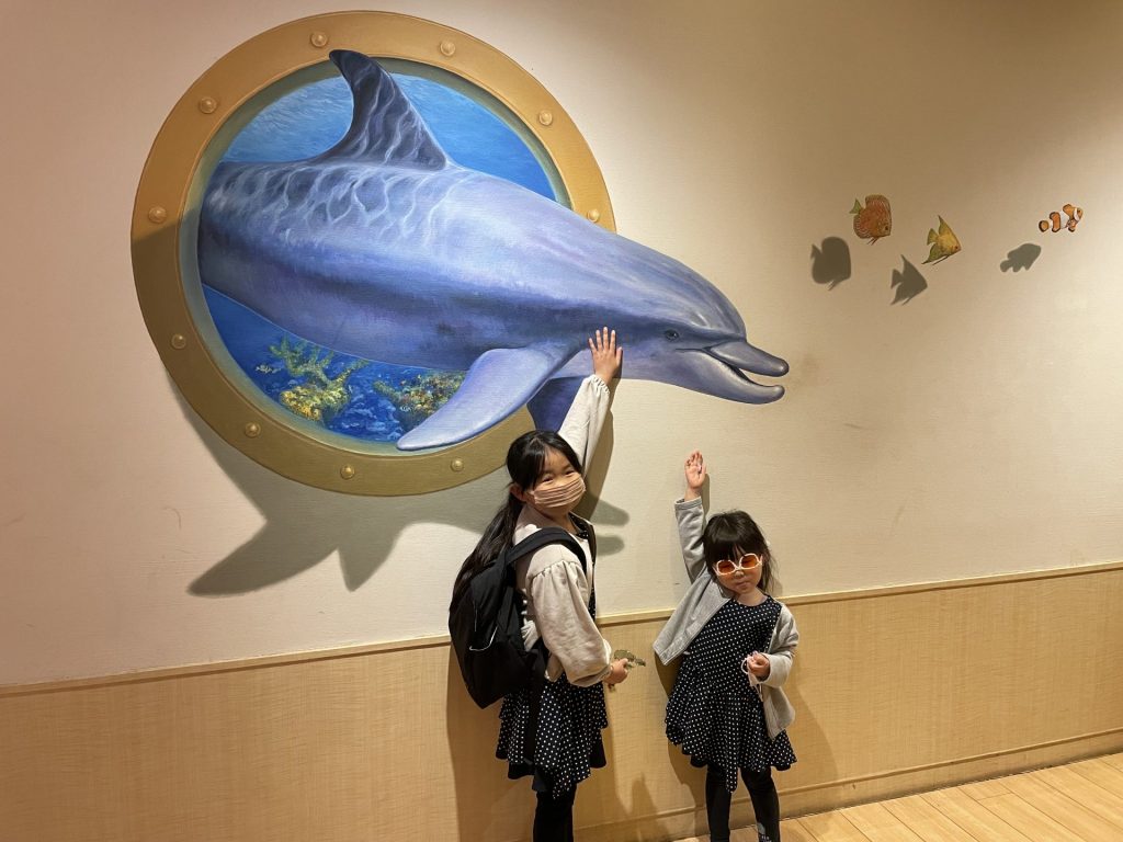 BBQ場がある建物、DECKSの中にはトリックアートも。通路にまで描かれていて、こんな写真が撮れちゃいました。