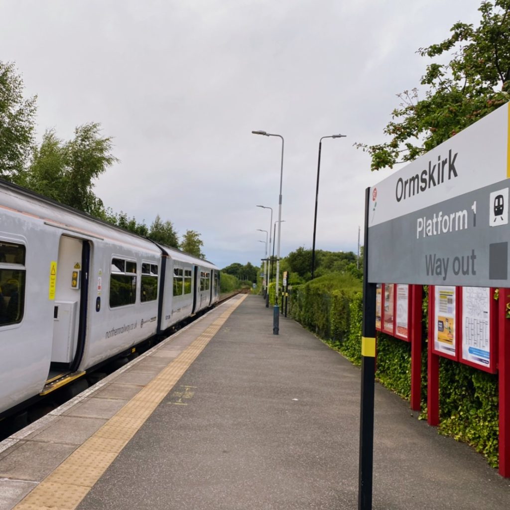 Prestonから19:26発の電車に乗って、Ormskirkまで。所要時間30分ほどで、ボックス席に座れました。